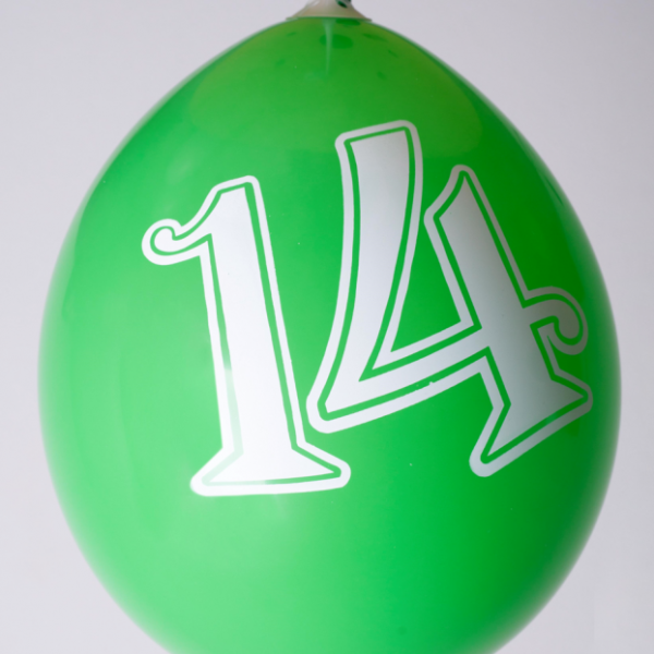 Ballons 12" - Chiffre 14 Imprimé Blanc 1 Face Assortis - Sachet Cavalier de 8
