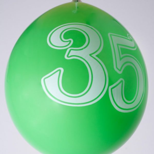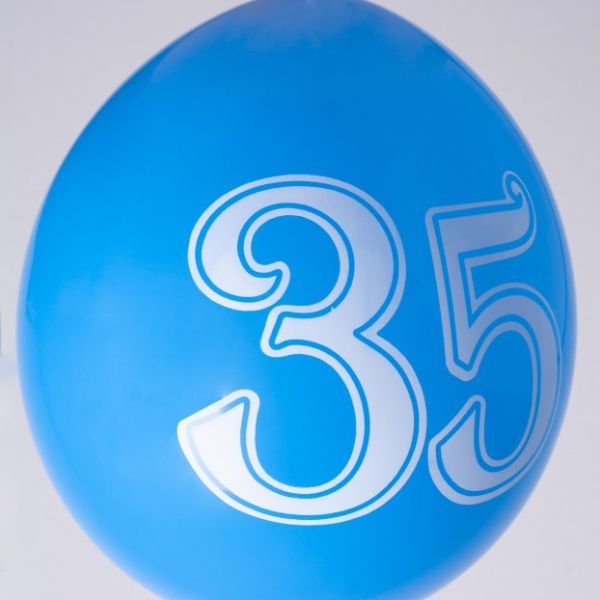 Ballons 12" - Chiffre 35 Imprimé Blanc 1 Face Assortis - Sachet Cavalier de 8
