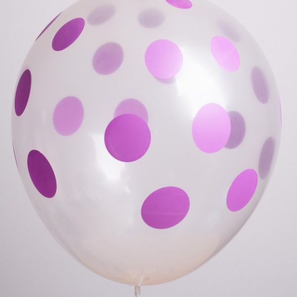 Ballons 16" - Cristal Transparent Imprimé Pois Assortis - Sachet de 100