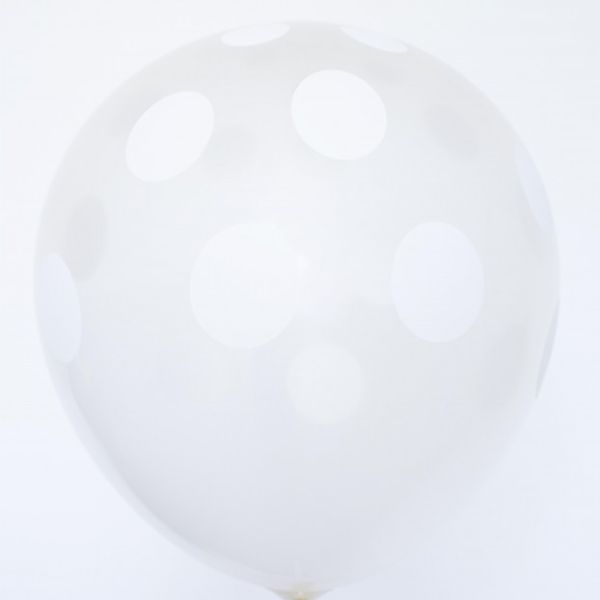 Ballons 16" - Cristal Transparent Imprimé Pois Blanc - Sachet de 100