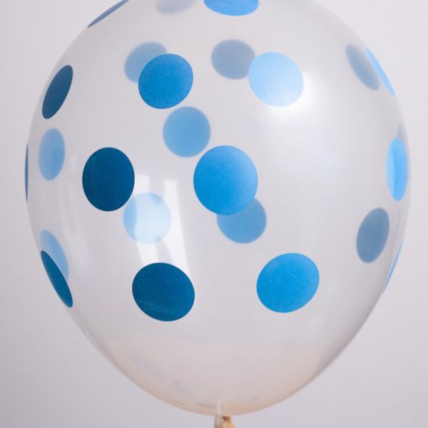 Ballons 16" - Cristal Transparent Imprimé Pois Bleu - Sachet de 100