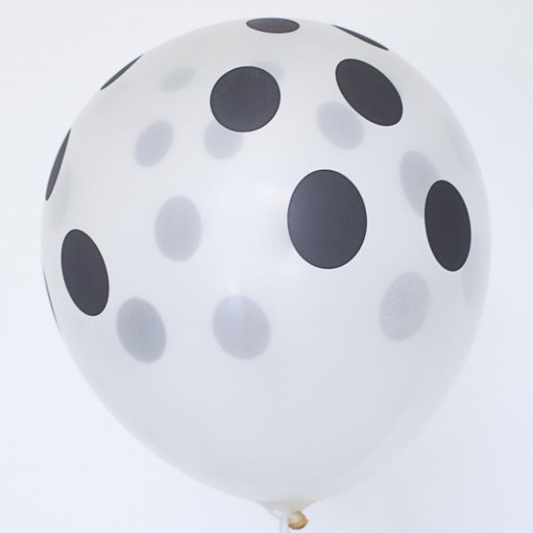 Ballons 16" - Cristal Transparent Imprimé Pois Noir - Sachet de 100
