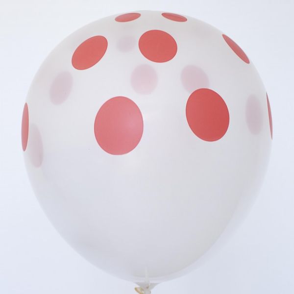 Ballons 16" - Cristal Transparent Imprimé Pois Rouge - Sachet de 100