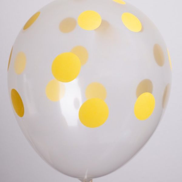 Ballons 16" - Cristal Transparent Imprimé Pois Jaune - Sachet de 100