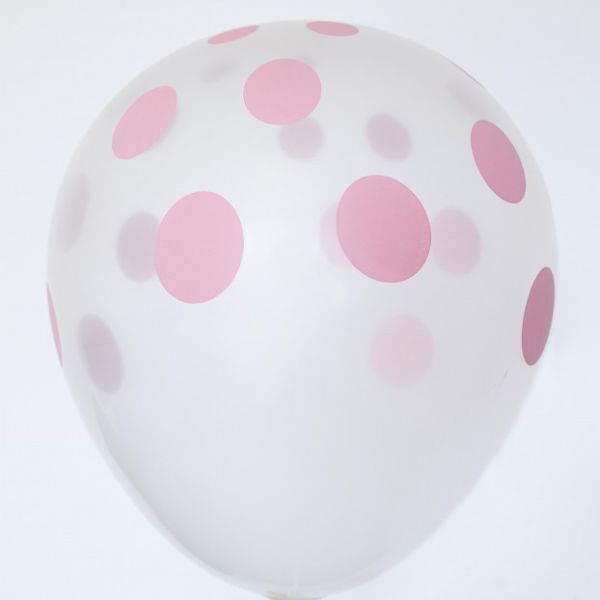 Ballons 16" - Cristal Transparent Imprimé Pois Rose - Sachet de 100