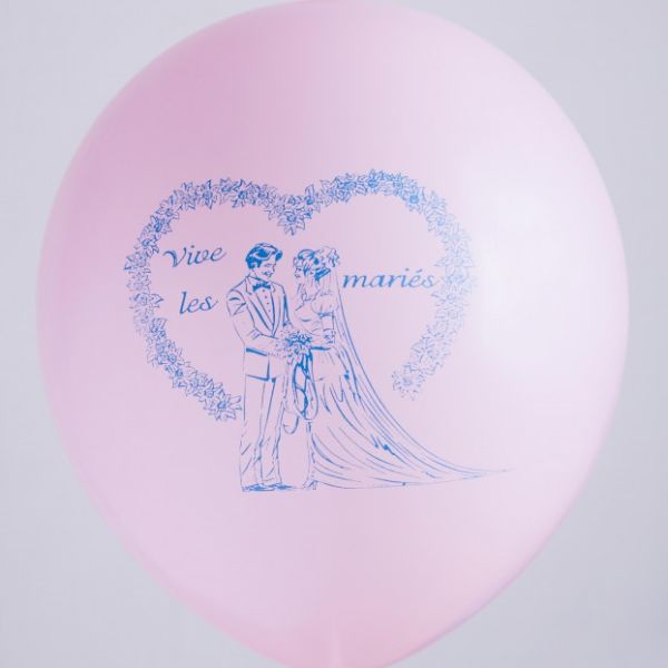 Ballons 12" - Imprimé 1 Face Vive les Mariés Rose - Sachet de 100