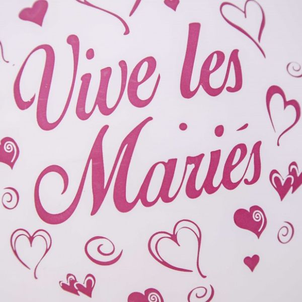 Ballons 12" - Imprimé 1 Face Vive Les Mariés Blanc - Sachet de 100