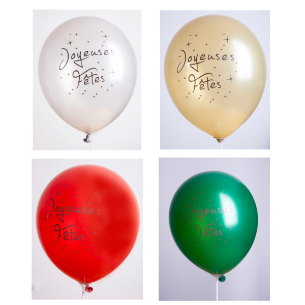 Ballons 12" - Imprimé 1 Face Joyeuses Fêtes Assortis Métal - Sachet de 100