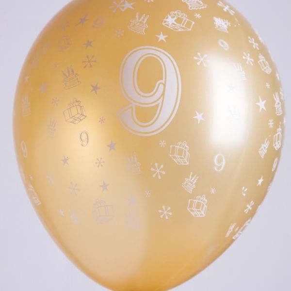 Ballons 12" - Chiffre 9 Imprimé Blanc TOT Assortis - Sachet Cavalier de 12