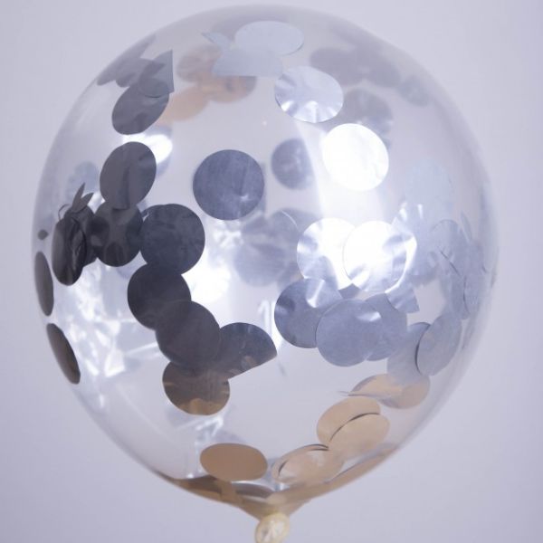 Ballons 12" - Transparent Confettis Argent - Pochette de 6