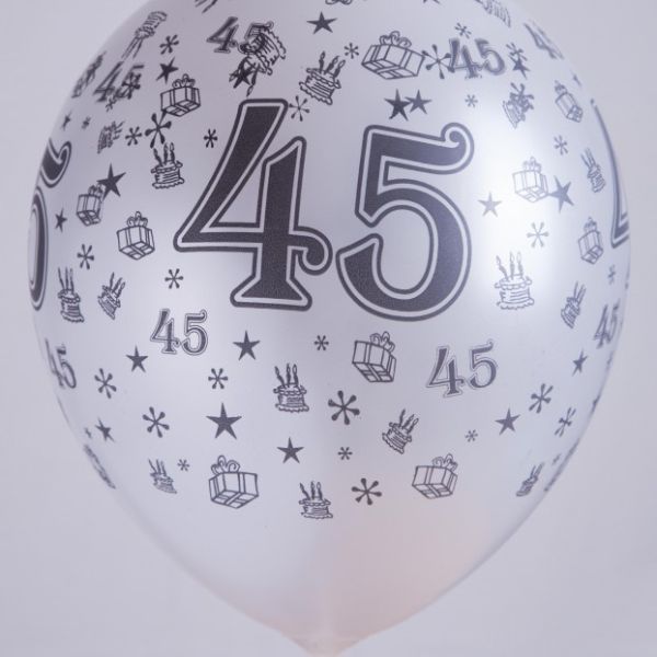Ballons 14" - Chiffre 45 Imprimé Noir TOT Perlé - Sachet de 100
