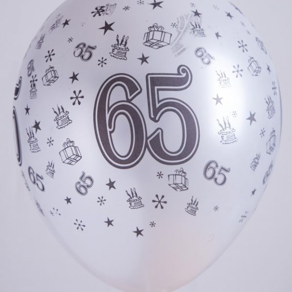 Ballons 14" - Chiffre 65 Imprimé Noir TOT Perlé - Sachet de 100