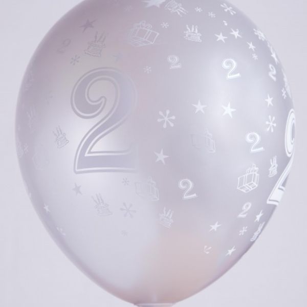 Ballons 14" - Chiffre 2 Imprimé Blanc TOT Métal Assortis - Sachet de 100