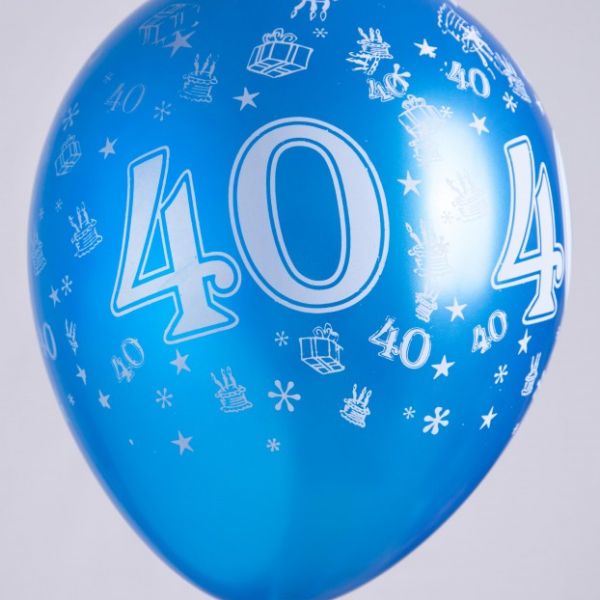 Ballons 14" - Chiffre 40 Imprimé Blanc TOT Métal Assortis - Sachet de 100