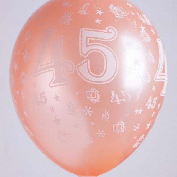 Ballons 14" - Chiffre 45 Imprimé Blanc TOT Métal Assortis - Sachet de 100