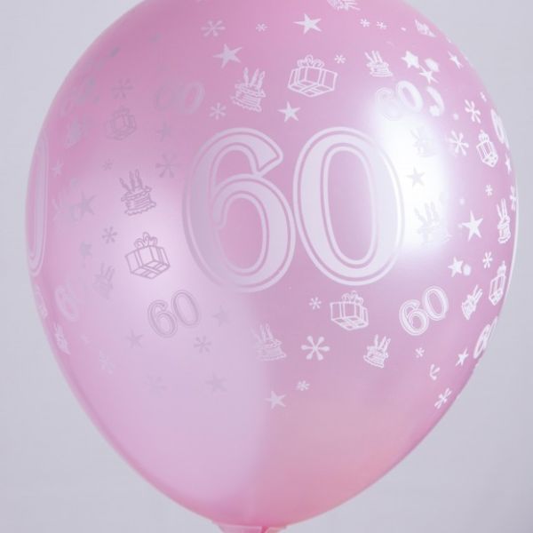 Ballons 14" - Chiffre 60 Imprimé Blanc TOT Métal Assortis - Sachet de 100