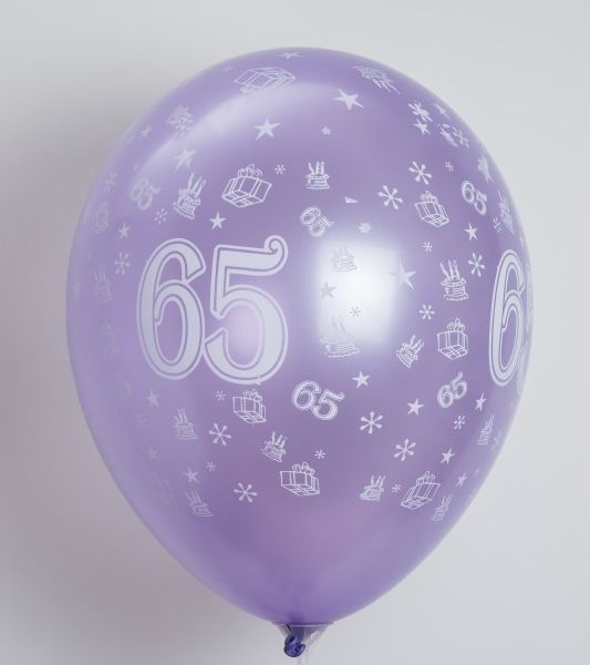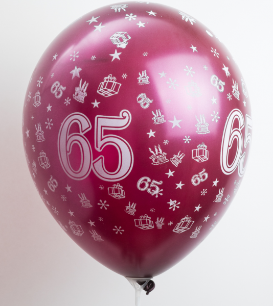 Ballons 14" - Chiffre 65 Imprimé Blanc TOT Métal Assortis - Sachet de 100