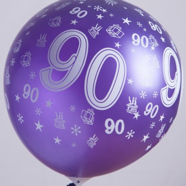 Ballons 14" - Chiffre 90 Imprimé Blanc TOT Métal Assortis - Sachet de 100