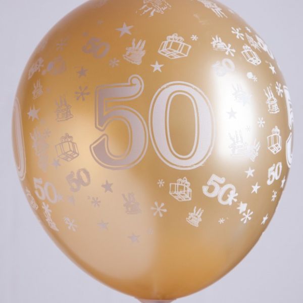 Ballons 14" - Chiffre 50 Imprimé TOT Métal Or - Sachet de 100