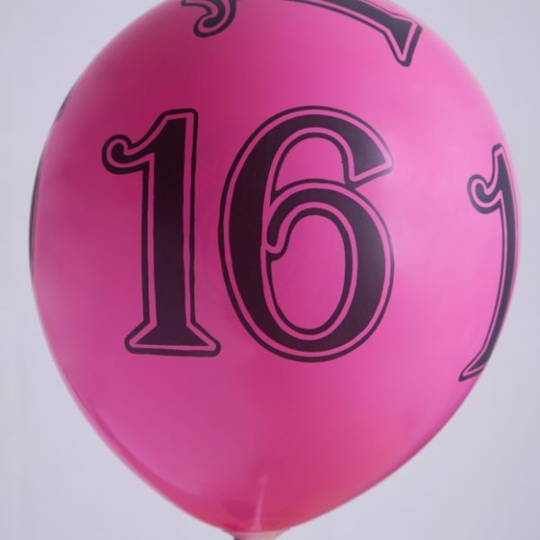 Ballons 12" - Chiffre 16 Imprimé noir TOT Fushia - Sachet de 100