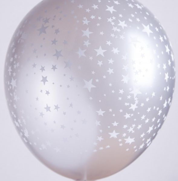Ballons 14" - Imprimé Métal Argent TOT Etoiles - Sachet de 100