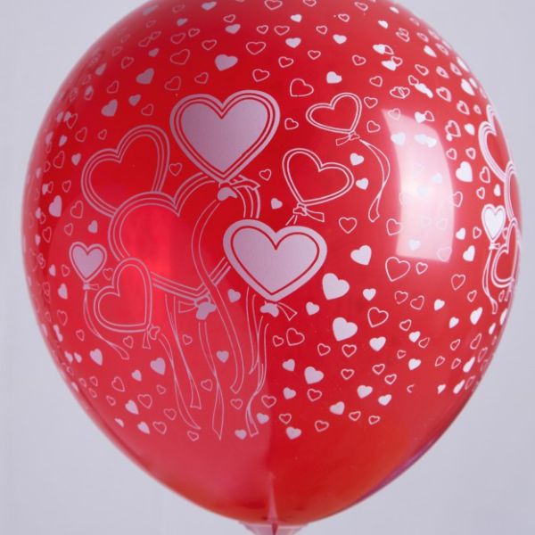 Ballons 12" - Imprimé TOT Rouge Coeurs - Sachet de 100