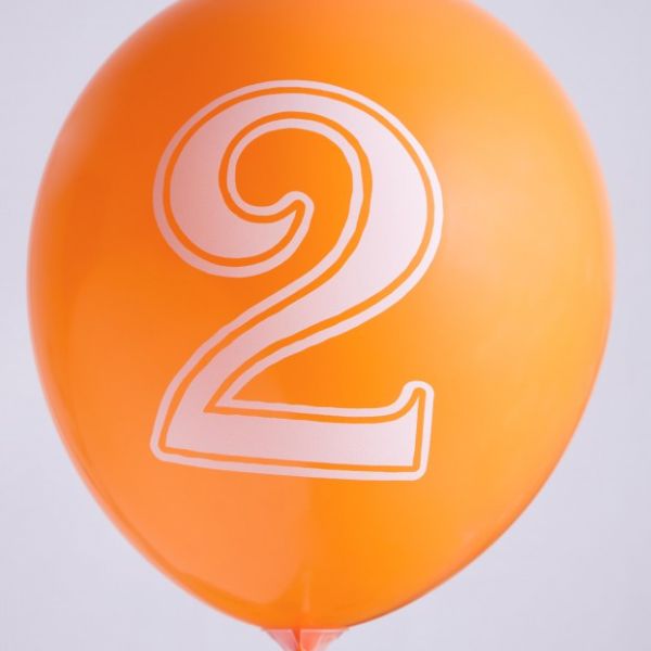 Ballons 12" - Chiffre 2 Imprimé Blanc 1 face Assortis - Sachet de 100
