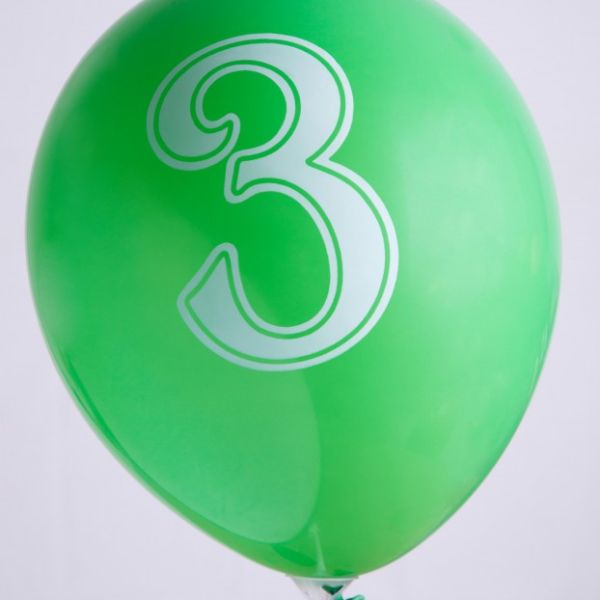 Ballons 12" - Chiffre 3 Imprimé Blanc 1 face Assortis - Sachet de 100
