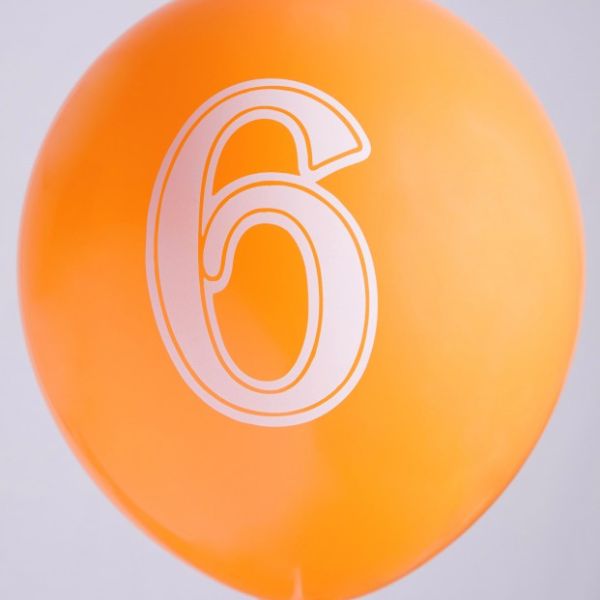 Ballons 12" - Chiffre 6 Imprimé Blanc 1 face Assortis - Sachet de 100