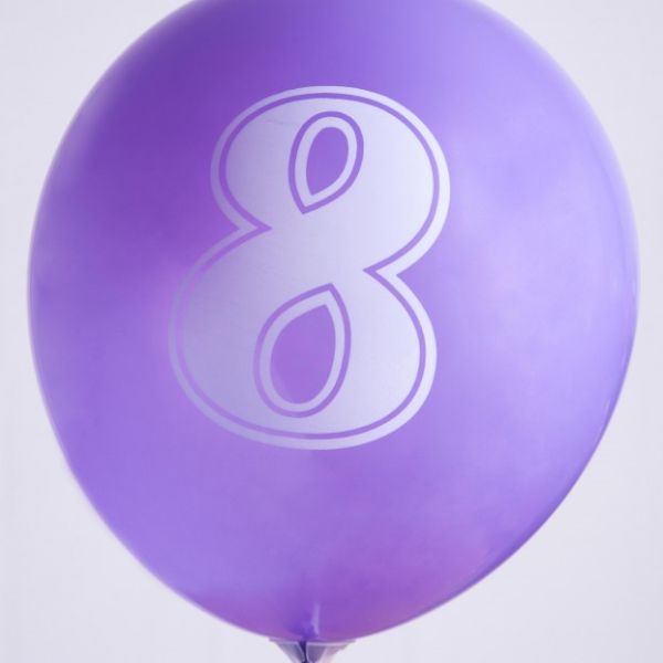 Ballons 12" - Chiffre 8 Imprimé Blanc 1 face Assortis - Sachet de 100
