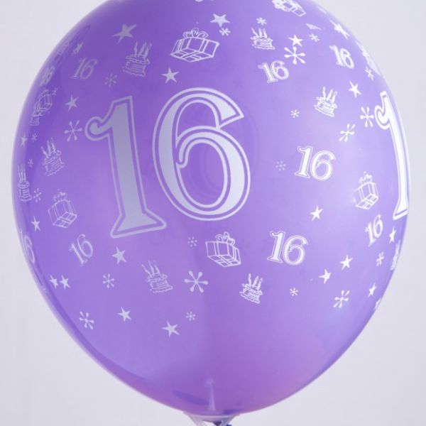Ballons 12" - Chiffre 16 Imprimé Blanc TOT Assortis - Sachet de 100