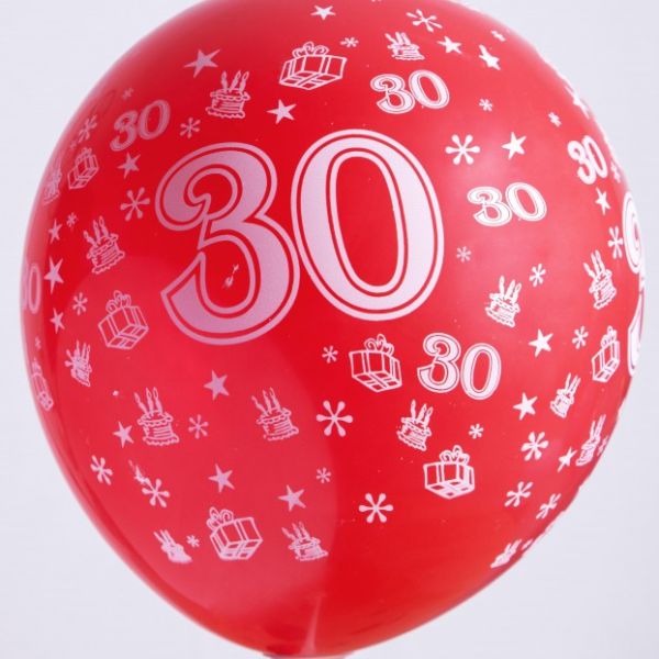 Ballons 12" - Chiffre 30 Imprimé Blanc TOT Assortis - Sachet de 100