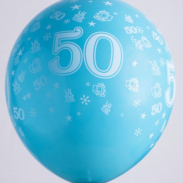 Ballons 12" - Chiffre 50 Imprimé Blanc TOT Assortis - Sachet de 100