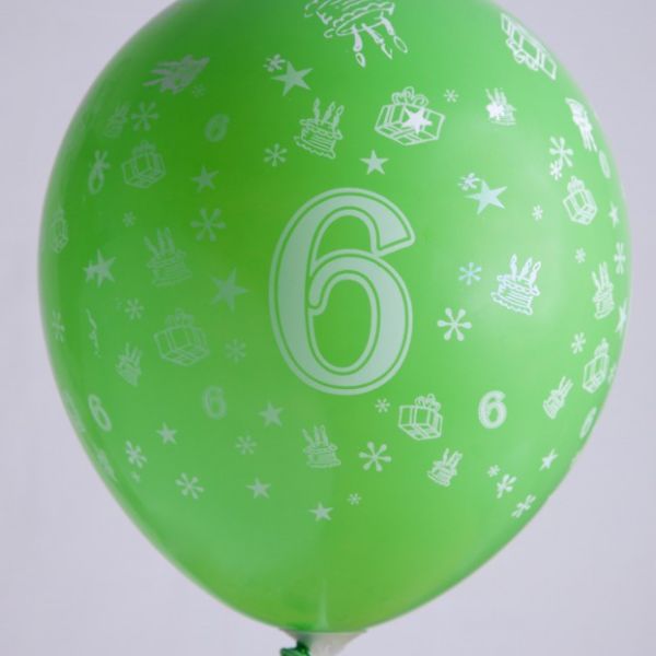 Ballons 12" - Chiffre 6 Imprimé Blanc TOT Assortis - Sachet de 100