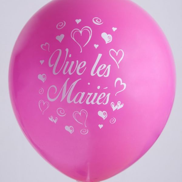 Ballons 12" - Imprimé 1 Face Vive Les Mariés Magenta - Sachet de 10