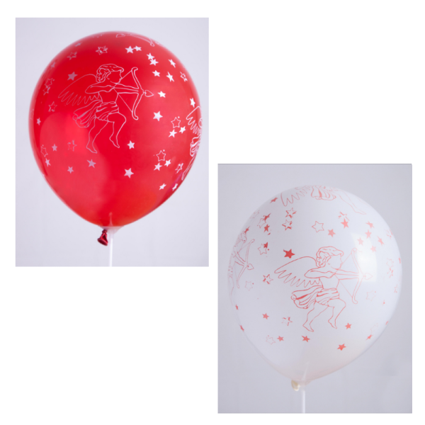 Ballons 12" - Imprimé TOT Blanc et Rouge Cupidon - Sachet Cavalier de 8