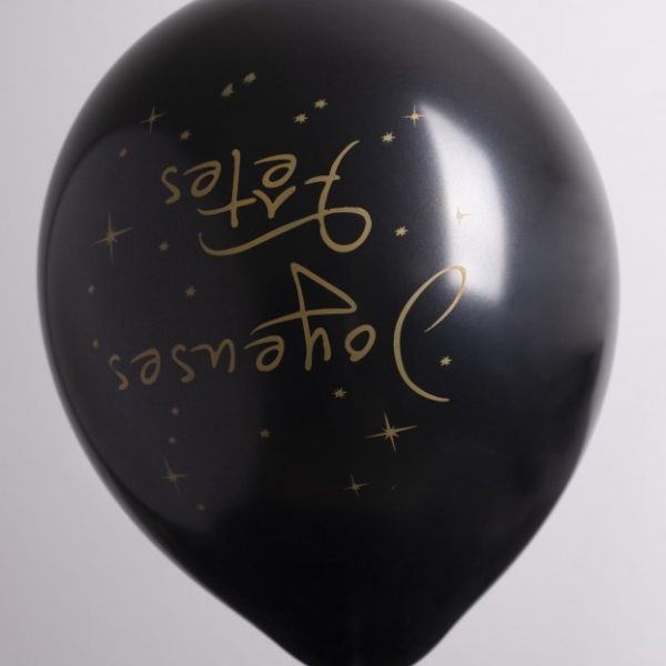 Ballons 12" - Imprimé 1 Face Joyeuses Fêtes Noir Métal - Sachet Cavalier de 10