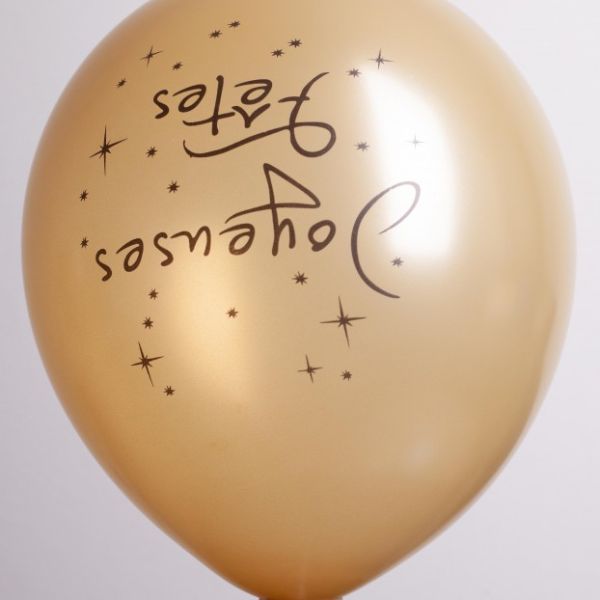 Ballons 12" - Imprimé 1 Face Joyeuses Fêtes Or Métal - Sachet Cavalier de 10