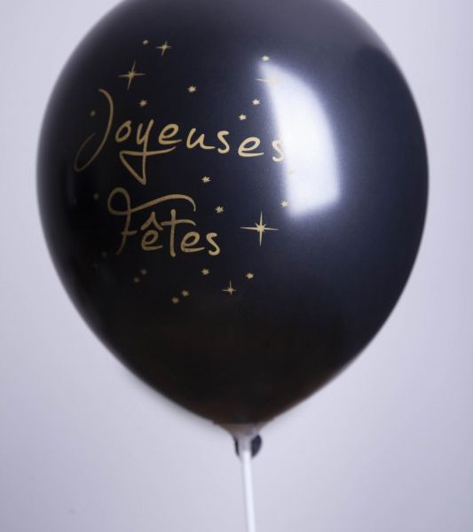 Ballons 12" - Imprimé 1 Face Joyeuses Fêtes Noir Métal - Sachet Cavalier de 10
