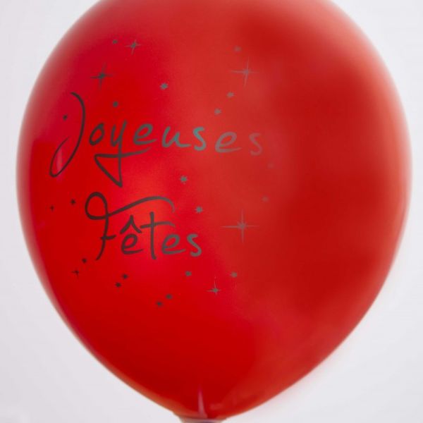 Ballons 12" - Imprimé 1 Face Joyeuses Fêtes Rouge Métal - Sachet Cavalier de 10