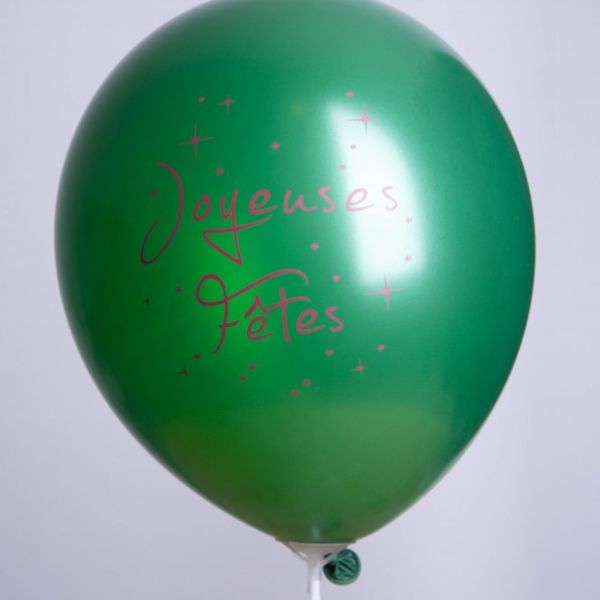 Ballons 12" - Imprimé 1 Face Joyeuses Fêtes Vert Métal - Sachet Cavalier de 10