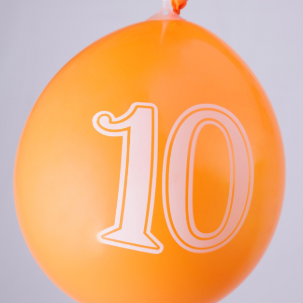 Ballons 12" - Chiffre 10 Imprimé Blanc 1 Face Assortis - Sachet Cavalier de 8