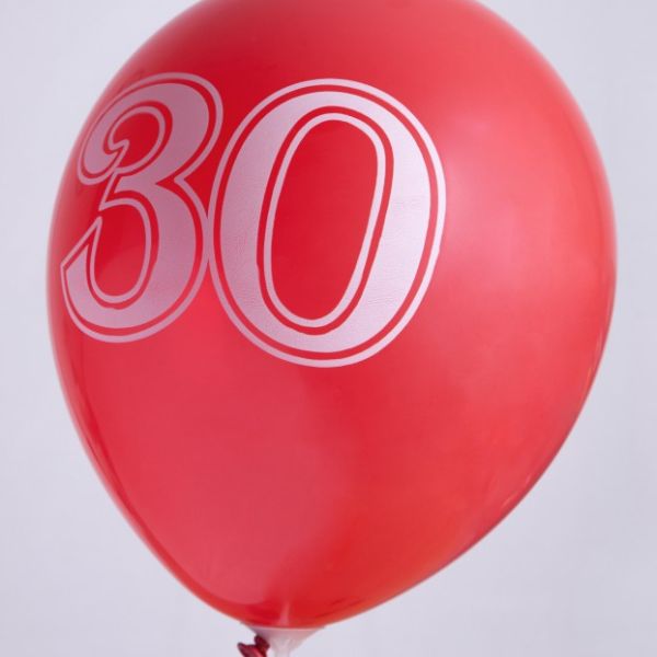 Ballons 12" - Chiffre 30 Imprimé Blanc 1 Face Assortis - Sachet Cavalier de 8