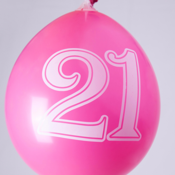 Ballons 12" - Chiffre 21 Imprimé Blanc 1 Face Assortis - Sachet Cavalier de 8
