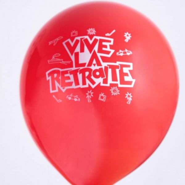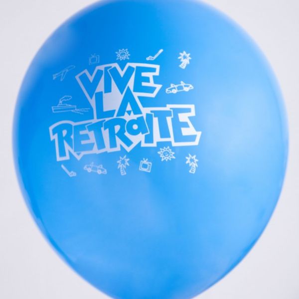 Ballons 12" - Imprimé 1 Face Vive La Retraite - Sachet Cavalier de 8