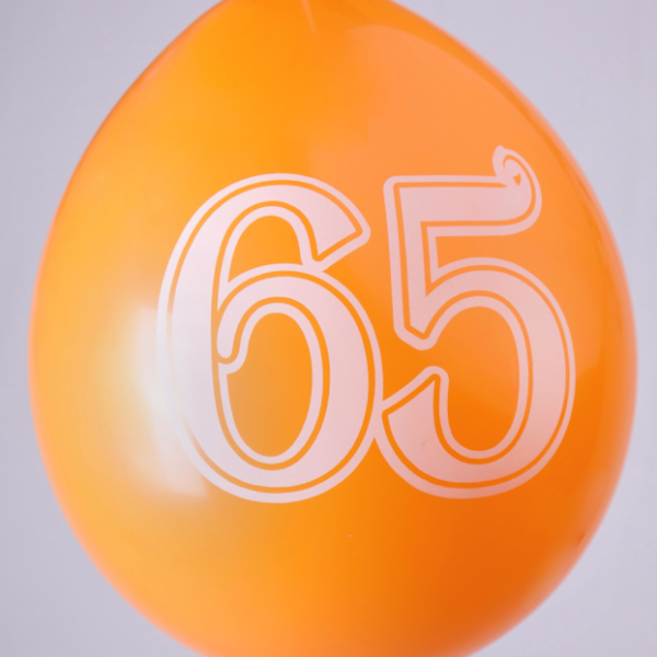 Ballons 12" - Chiffre 65 Imprimé Blanc 1 Face Assortis - Sachet Cavalier de 8