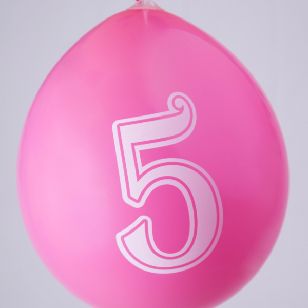Ballons 12" - Chiffre 5 Imprimé Blanc 1 Face Assortis - Sachet Cavalier de 8