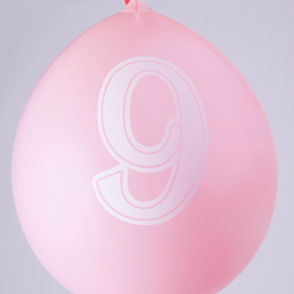 Ballons 12" - Chiffre 9 Imprimé Blanc 1 Face Assortis - Sachet Cavalier de 8
