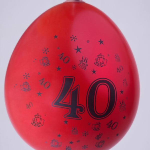 Ballons 14" - Chiffre 40 Rouge Rubis Imprimé 1 Face - Sachet Cavalier de 8
