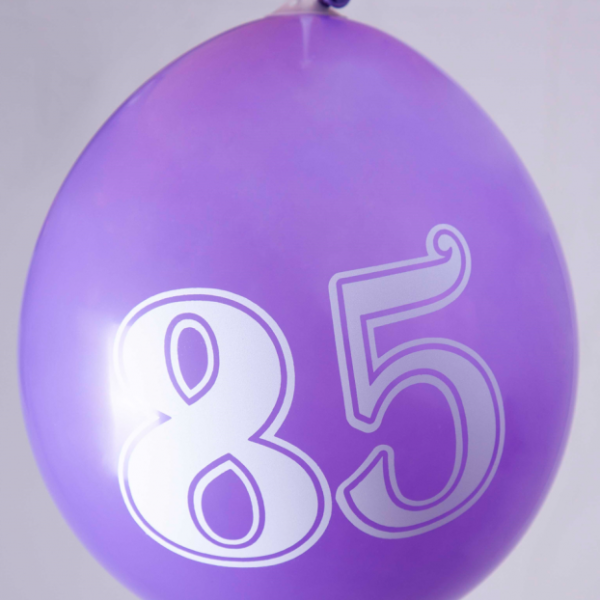 Ballons 12" - Chiffre 85 Imprimé Blanc 1 Face Assortis - Sachet Cavalier de 8